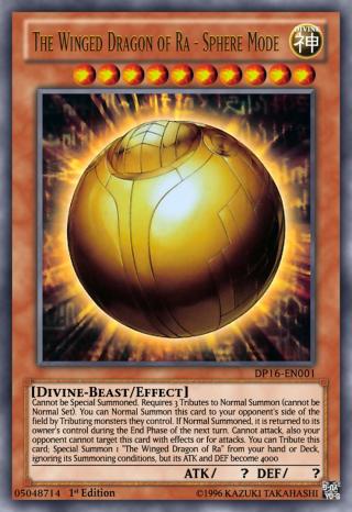| Power of the Tributed When you sucessfully Tributed Summon "The Winged of Ra", its ATK will becomes the sum of the ATK of the Tirbuted Monsters, and its DEF will becomes the sum of the Tributed Monsters. | ![]() Yami Marik |
