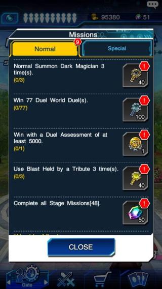 | Win 1 Duel against Yami Yugi (or Seto Kaiba) at Level 40 in Duel World. | Gem x10 | |||