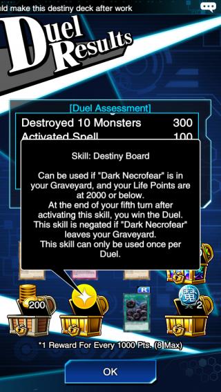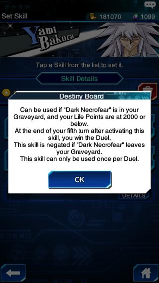 Can be used if Dark Necrofear is in your Graveyard, and your LP are at 2000 or below. At the end of your 5th turn after activating this skill, you win the Duel. This skill is negated if "Dark Necrofear" leaves your Graveyard. This skill can only be used once per Duel.