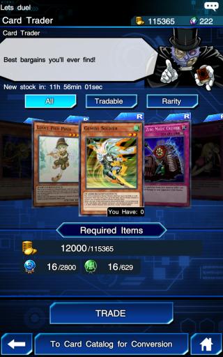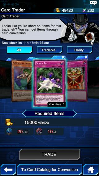 Trader items is needed to get cards from the card trader. Players can get those items as reward for winning a duel or completing a mission or convert cards into those items.